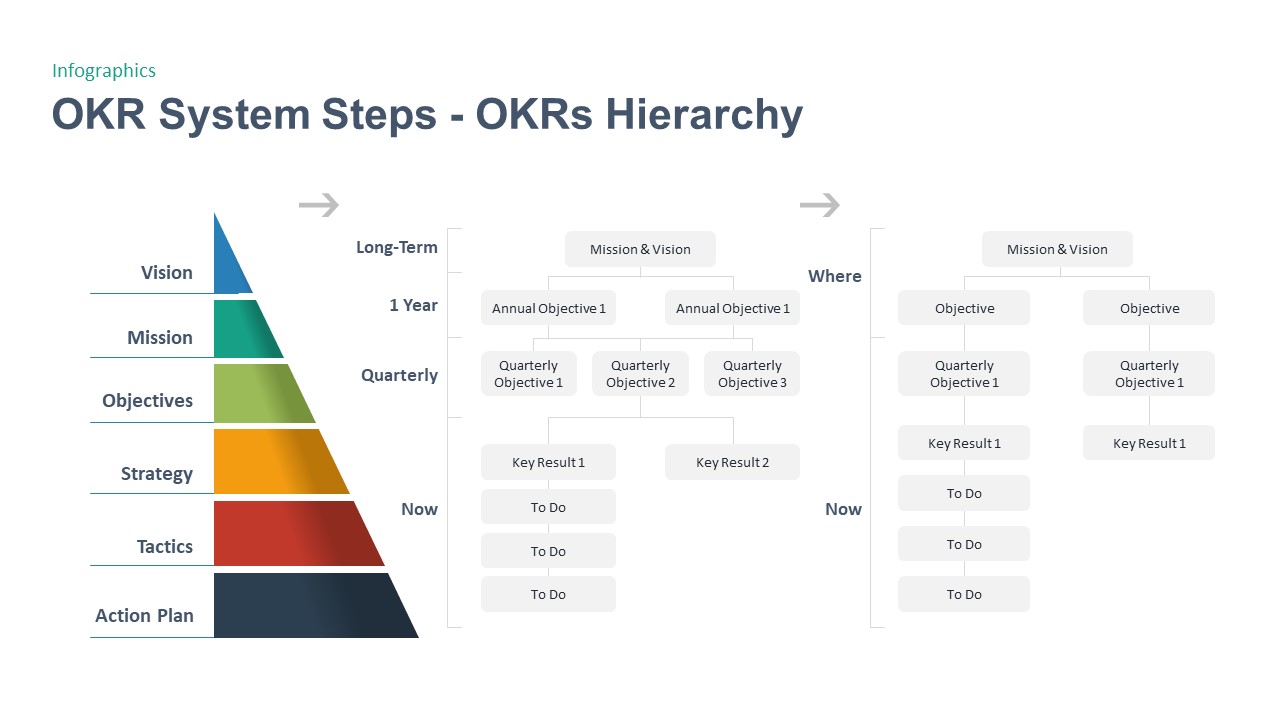 這是一個分層系統(tǒng),所以 OKR 首先在員工個人層面設(shè)置,然后是經(jīng)理,然后是經(jīng)理的經(jīng)理,依此類推。目標(biāo)和關(guān)鍵結(jié)果本身應(yīng)該聯(lián)系在一起并向上爬。因此,當(dāng)員工實(shí)現(xiàn)目標(biāo)時,經(jīng)理應(yīng)該實(shí)現(xiàn)目標(biāo),然后是部門主管等。