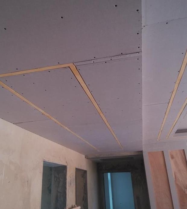 他在做吊頂時讓那個木工師傅在吊頂上開了一道溝,然后用黑色的不銹鋼條扣在在那個溝槽上面,這樣等頂部刮好膩子之后,就有一種黑白相配等裝飾效果。不銹鋼條本身亮度就很高,所以看上去裝飾效果很強,很有輕奢風格,業主覺得很漂亮。但是當木工師傅施工時看到這個不銹鋼線條的吊頂之后,他就搖搖頭說這個做法是錯的。
