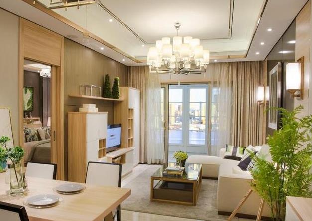 這間客廳第一眼就給人濃烈的時尚感,沙發背景墻玻璃與軟包結合設計,極具現代感。落地窗推拉門采用不銹鋼邊框的玻璃推拉門,與沙發背景墻遙相呼應。就連吊頂也沒有放過,不銹鋼線條裝飾吊頂,線條流暢,讓整個家居空間更具質感。