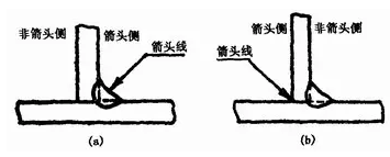 箭頭線相對焊縫的位置一般沒有特殊要求,見圖1—25(a)、(b)。但是在標注單邊V、單邊Y、J形焊縫時,箭頭線應指向帶有坡口一側的工件,見圖1—25(c)、(d)。必要時,允許箭頭線彎折一次,如圖1—26。