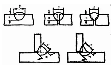 熔焊時,在單道焊縫橫截面上焊縫寬度(B)與焊縫計算厚度(H)的比值(ф=B/H),叫焊縫成形系數(shù),見圖1—21。該系數(shù)值小,則表示焊縫窄而深,這樣的焊縫中容易產(chǎn)生氣孔和裂紋,所以焊縫成形系數(shù)應該保持一定的數(shù)值,例如埋弧自動焊的焊縫成形系數(shù)ф要大于1.3。