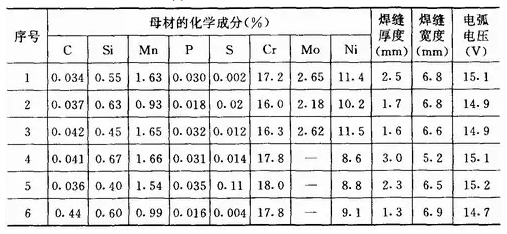 (7)母材的化學(xué)成分??母材的化學(xué)成分不同,在其它工藝因素不變的情況下,焊縫形狀不一樣,這一點(diǎn)在氬弧焊時(shí)特別明顯。如三種產(chǎn)地不同的0Cr18Ni19和0Cr18Ni12Mo2不銹鋼,用鎢極氬弧焊方法焊接,采用相同的焊接工藝參數(shù)時(shí),所得焊縫形狀的變化,見(jiàn)表1—10。