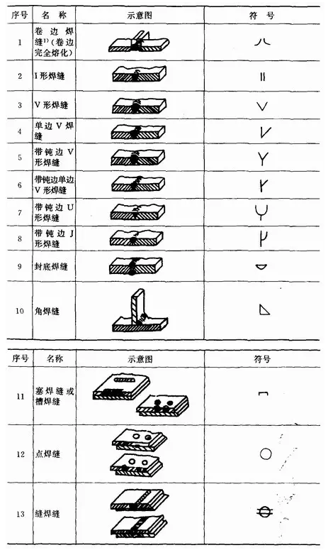 基本符號(hào)是表示焊縫橫截面形狀的符號(hào),見(jiàn)表1—4。