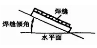 焊縫傾角,即焊縫軸線(xiàn)與水平面之間的夾角,見(jiàn)圖1—13。