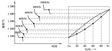 圖1.2.10 Cu-Ni合金的冷卻曲線及相圖