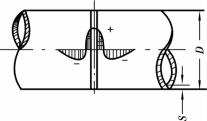 圓筒形工件環(huán)焊縫焊接以后產(chǎn)生的焊接應(yīng)力如圖4.2.4所示,其切向應(yīng)力的大小與圓筒直徑D、工件厚度S有關(guān),直徑越大、厚度越厚,則焊接應(yīng)力也越大。