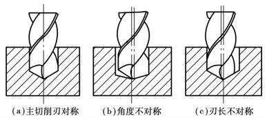 ①鉆頭容易引偏 由于麻花鉆橫刃較長(zhǎng),致使鉆孔時(shí)軸向抗力增大。加之鉆頭剛性較差,兩條很窄的螺旋棱帶的導(dǎo)向性也不好。因此,鉆頭在開始切削時(shí)就容易引偏,切入以后易產(chǎn)生彎曲變形,致使鉆頭偏離原軸線。